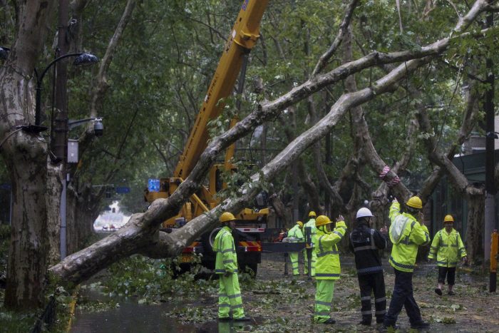 The typhoon, which weather authorities described as the strongest to hit Shanghai since at least 1949, weakened as it moved inland. Around 2 a.m. on Tuesday, it was downgraded to a tropical storm.