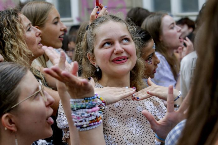 They sang Swift’s top hits, took selfies and traded friendship bracelets hanging from the branches of the only tree on the street. Swift fans often swap the beaded bracelets, typically bearing Swift’s song titles or popular phrases, with strangers at her concerts.