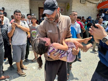 CAIRO (Reuters) – Bodies of at least 55 Palestinians killed in Israeli attacks on Al-Nuseirat and other areas in central Gaza, and dozens wounded, in the attacks, arrived on Saturday at Al-Aqsa Martyrs Hospital, the health ministry in the Hamas-run enclave said.