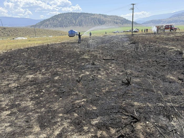 The incident briefly knocked out the power for Ashcroft, and firefighters and ranchers used about 4,800 gallons of water to put out the blaze.