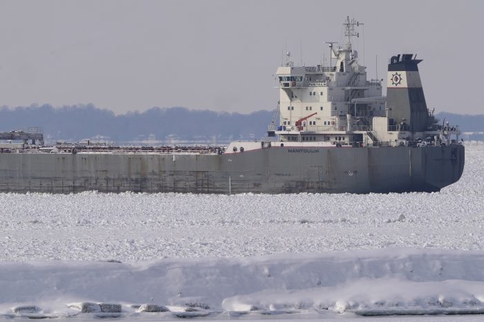 The Manitoulin wasn’t damaged and the captain and crew were safe, the Coast Guard said. A Coast Guard cutter started breaking up ice around the ship by Thursday afternoon.