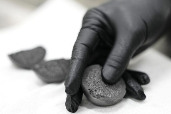 X-energy uses graphite and other cohesive materials to bind 18,000 kernels together into a larger sphere. That gets coated in a final layer of graphite to seal the final pebble. In the end, it’s strong enough to withstand the weight of an SUV.