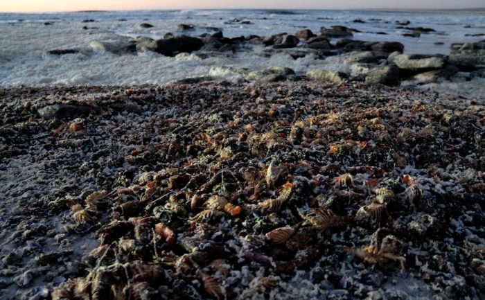 The environment ministry warned people on Thursday against collecting and eating the crayfish, which could be toxic, and police were deployed on some beaches.