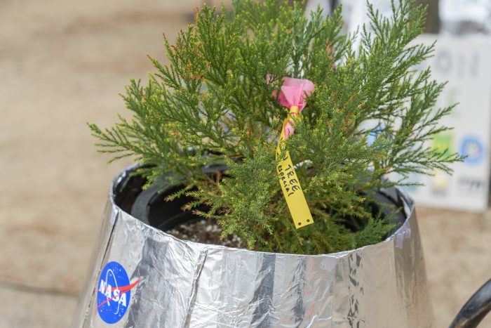 “It’s kind of crazy,” said Emily Aguesse, a sixth grader who participated in Monday’s ceremony welcoming the tree. “I’ve always wanted to go to space but this motivates it even more.”