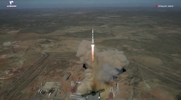 A Soyuz booster rocket lifted off as scheduled from the Russia-leased Baikonur launch facility in Kazakhstan to put the Soyuz MS-27 carrying the trio in orbit. They docked at the station just over three hours later.