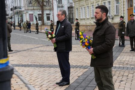 (Reuters) – Air defences were engaged in Ukraine’s capital of Kyiv on Thursday to repel a Russian drone attack, officials said, and Reuters witness reported explosions in the city while British Prime Minister Keir Starmer was visiting.