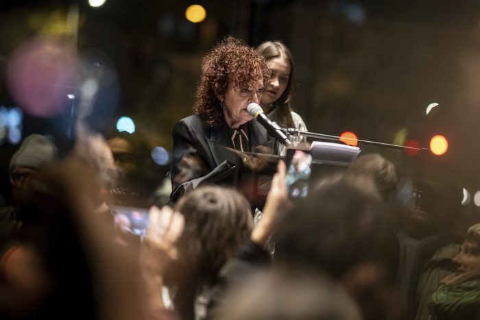 Goldin walked off the stage to loud chants of “free, free Palestine,” which drowned out a subsequent speech by the director of the gallery, Klaus Biesenbach.