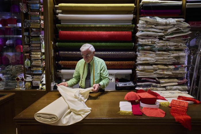 “Francis preferred things that were much simpler and practical,” Mancinelli said inside his shop, just down the street from one of the Vatican’s main entrance gates. “Ratzinger (Pope Benedict XVI) liked slightly more choice fabrics.”