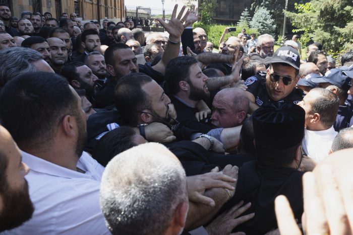On Friday, security forces faced off with crowds at the headquarters of the Armenian Apostolic Church outside Yerevan as they tried to arrest Ajapahyan. Videos circulating on social media showed clergymen jostling with police, while bells of a nearby cathedral rang out.
