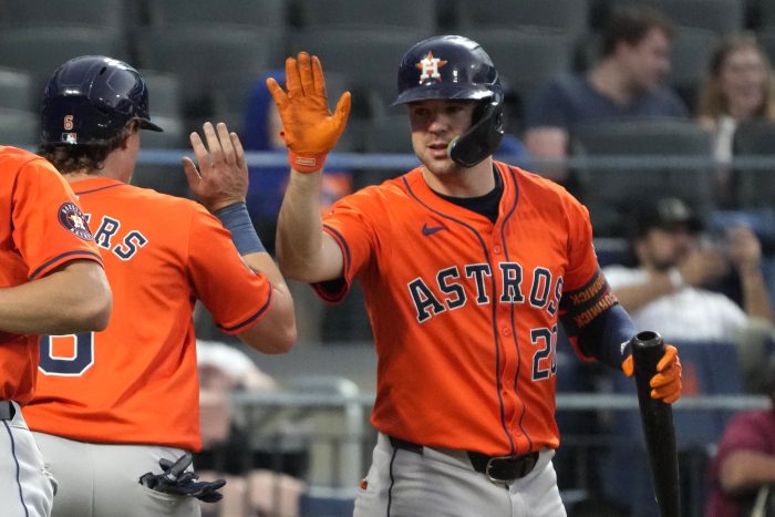 Jon Singleton put Houston ahead in the second with his sixth home run of the season and first since May 21. Yainer Diaz hit an RBI single in a two-run fifth that included Meyers’ run-scoring groundout, and Altuve blooped an RBI single in the sixth for a 4-0 lead.