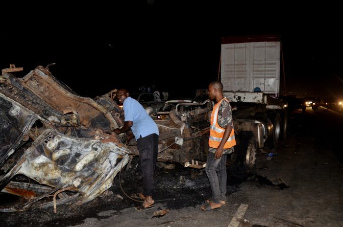 Trailer in Nigeria crashes into vehicles and bursts into flame, killing at least 6 people