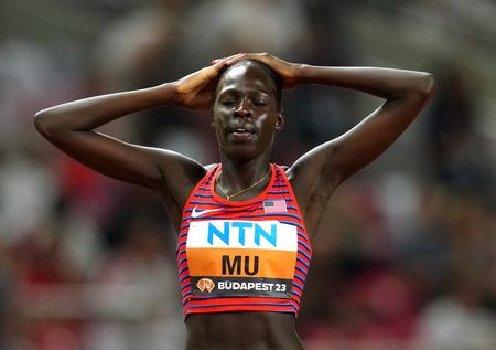 (Reuters) – Athing Mu lost the chance to defend her Olympic 800m title in Paris after crashing to the ground and trailing home last at the U.S. trials on Monday, while Quincy Hall upstaged Michael Norman to win the men’s 400m in Eugene, Oregon.