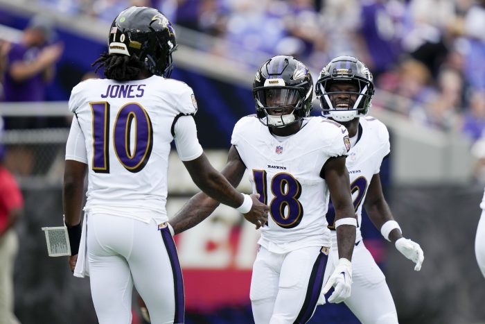 Jones appeared in only one play in Baltimore’s first preseason game, and he fumbled to set up the winning kick by the Eagles. It was a much better showing this time for the rookie out of Cincinnati. He found Dayton Wade for a 56-yard touchdown in the third quarter after Wade had run past defensive back Anthony Johnson.