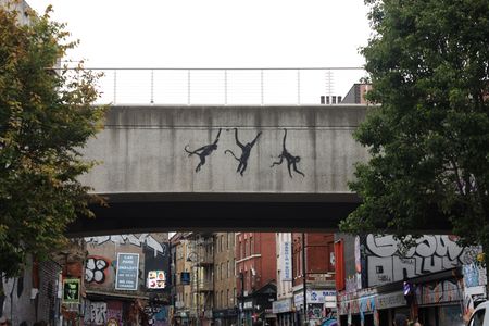 Next came two elephant heads, peering out of two blocked out windows on the side of a house in affluent Chelsea, followed by three monkeys which appear to be hanging from a railway bridge near east London’s Brick Lane.
