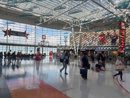 Out-of-towners were greeted with a replica WNBA court when they stepped off the plane at Indianapolis International Airport this week, where a merchandise shop filled with Clark t-shirts was available before travelers could even reach baggage claim.