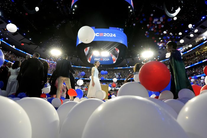 The flag was everywhere, as was the notion of freedom. Tim Walz entered to the tune of John Mellencamp’s “Small Town,” an ode to the vision of America that Republicans usually trumpet. Sen. Amy Klobuchar of Minnesota expounded upon the regular-guy traits that Walz embodies — someone who can change a car light, a hunter, a “dad in plaid.”