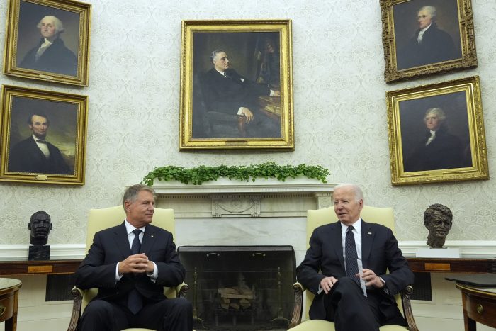 In turn, Iohannis thanked Biden for hosting him and called the transatlantic alliance “a cornerstone of our democratic way of life.” He said he intended to make progress toward a visa waiver for Romanian travelers to the U.S. but that the most important topic was “to find a way to reinstall peace” in Europe and to ensure that Russian President Vladimir Putin doesn’t win.