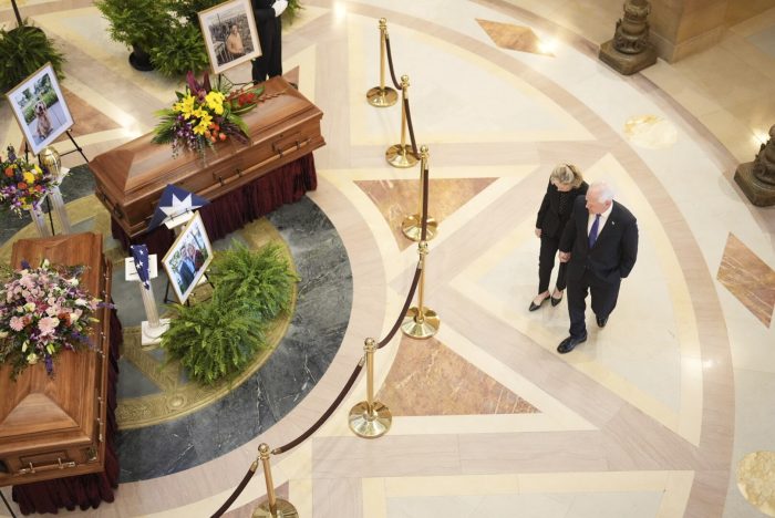 Biden was also one of more than 7,500 people who paid their respects Friday as Hortman, her husband, Mark, and their golden retriever, Gilbert, lay in state in the Minnesota Capitol rotunda in St. Paul. Gilbert was seriously wounded in the attack and had to be euthanized. Biden also visited the wounded senator in a hospital.