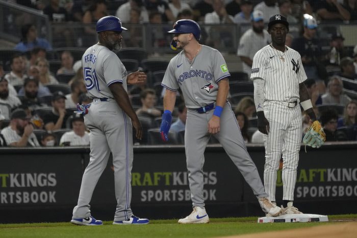 “He’s an aggressive hitter and he’s swinging early,” Blue Jays manager John Schneider said. “He’s doing a good job of recognizing that and kind of getting pitches a little bit more in the zone.”