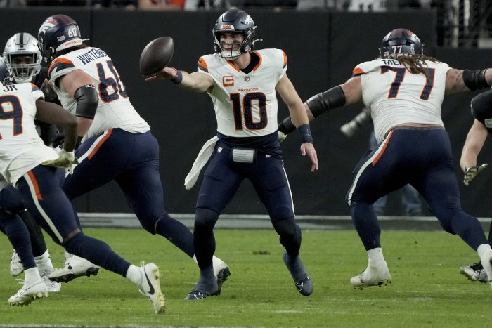 Those plays helped erase a 13-9 halftime deficit. The Broncos outscored Las Vegas 20-6 in the second half after adjusting to the Raiders’ willingness to repeatedly bring more pressure than anticipated.