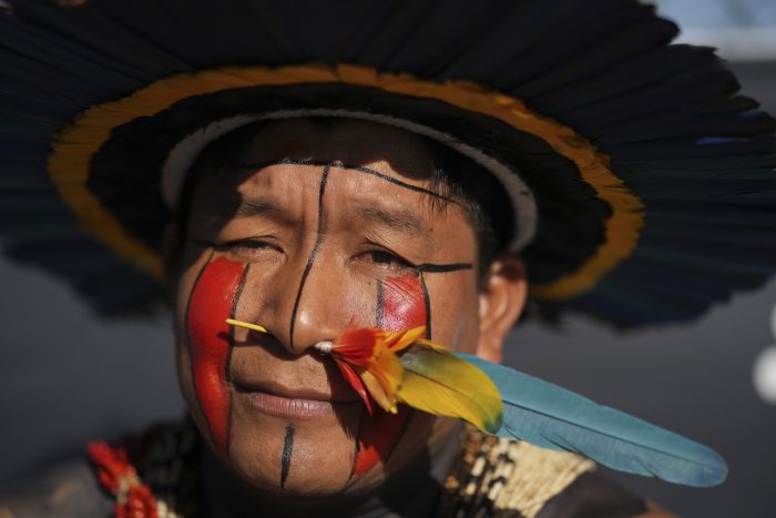 The event came months before Brazil is to host the U.N.’s first climate talks held in the Amazon. The protesters outside Tuesday’s venue warned of potential risks that oil drilling poses to sensitive ecosystems and Indigenous communities in the Amazon.