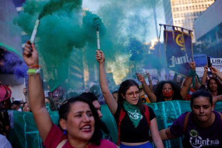 SAO PAULO (Reuters) – Thousands of women protested on Saturday against a bill advancing in Brazil’s conservative Congress that would equate abortions after 22 weeks of pregnancy to homicide and establish sentences of six to 20 years in prison.