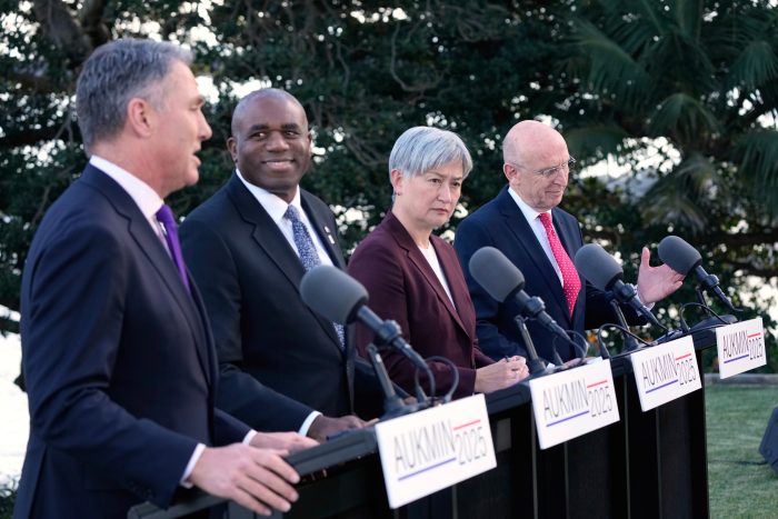 Britain’s Defense Secretary John Healey and Foreign Secretary David Lammy met Friday with their Australian counterparts Richard Marles and Penny Wong in Sydney for an annual bilateral meeting.