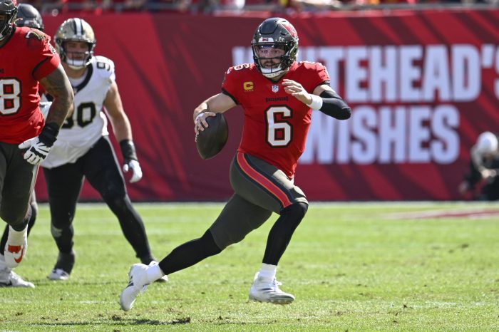 Mayfield fired a 32-yard touchdown pass to Jalen McMillan for the go-ahead score and then scrambled 28 yards for a crucial first down on the next drive. After Mayfield’s long scramble on third-and-14 from the Tampa 12, the Buccaneers drove to the Saints 11. Mayfield looked for Evans but flipped the ball backward to Bucky Irving, who ran 11 yards for a TD.