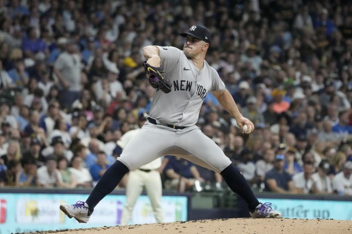 MILWAUKEE (AP) — Carlos Rodón pitched two-hit, one-run ball through six innings and the New York Yankees hit four home runs in a 15-3 rout of the Milwaukee Brewers on Saturday night. Alex Verdugo had a three-run homer in the first inning. Aaron Judge and Anthony Rizzo added two-run shots in the sixth that put […]