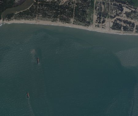 Satellite images show deck cargo ships unloading vehicles directly onto beaches using their attached ramps. Reuters is the first to publish images of this strategy during an amphibious landing exercise. These civilian vessels, roughly 90 meters long and widely used in Asian commercial shipping, can deliver cargo to beaches without port facilities due to their shallow draft and open-deck design.