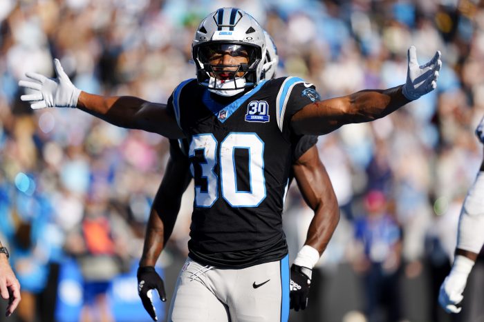 The Panthers (2-7) got big games from a pair of rookies as tight end Ja’Tavion Sanders caught four passes for 87 yards and wide receiver Xavier Legette hauled in his fourth touchdown of the season as well as a huge 26-yard catch on the winning drive to avenge an embarrassing 47-10 Week 1 loss to their division foes.