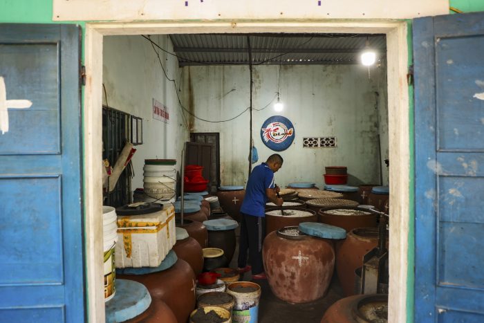 But it is harder to get the perfect anchovies. The fish catch has decreased — fishermen in markets across Vietnam rue the fact that much of the fish they sell now was considered bait-size in previous decades — and it’s only the good relationships he has with anchovy fishermen that allow him to get the fish directly, avoiding high market prices. The unmistakeable aroma of fermenting fish cloaks the homes of families that still make traditional fish sauce. But Phu said that many families are thinking of getting out of the business because of high anchovy prices.
