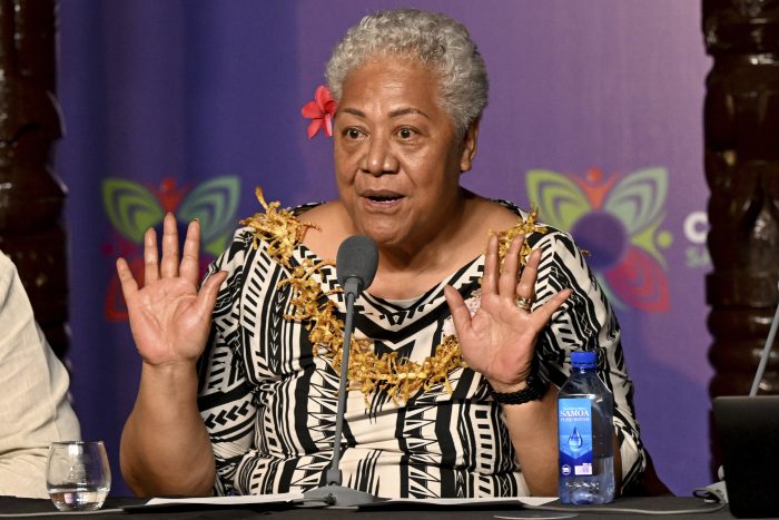 Samoa Prime Minister Fiame Naomi Mata’afa said in a statement released by her office that it was fitting for “our first ocean declaration” to be adopted “in the Blue Pacific continent given climate change has been recognised as the single greatest threat to the security and well-being of our people.”