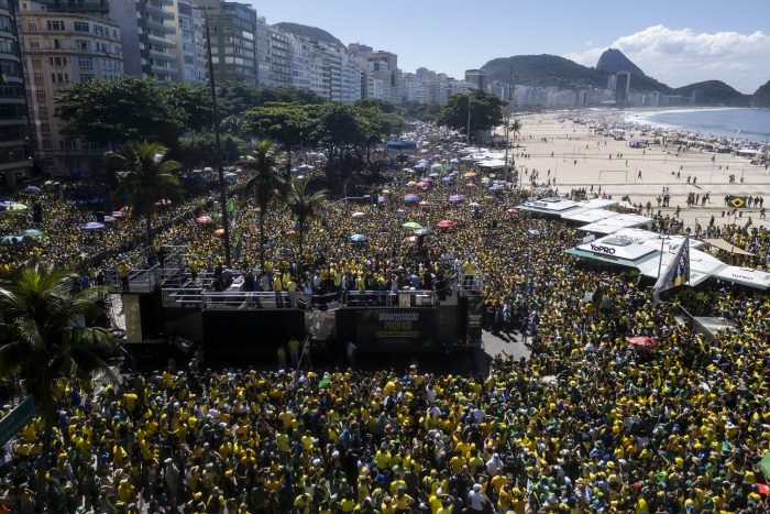“Brazil Thanks Elon Musk,” read one giant sign in English at the rally alongside Copacabana beach in the seaside city of Rio de Janeiro. Thousands of die-hard supporters of Bolsonaro attended.