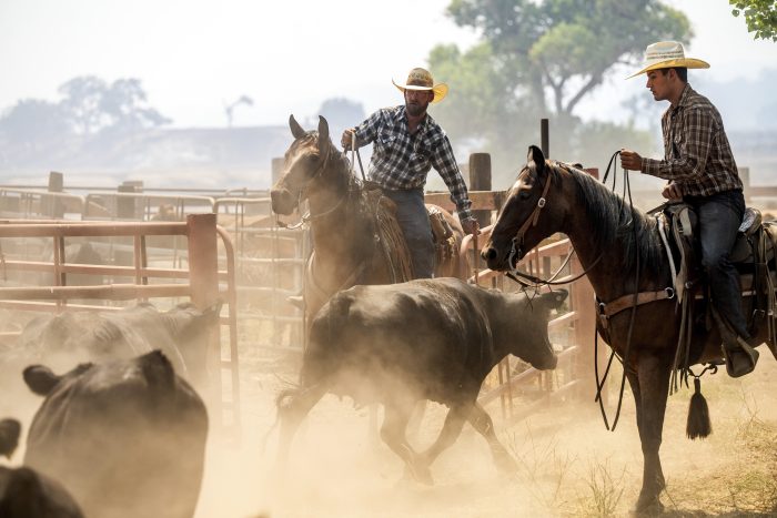 Ranchers evacuated cattle as aircraft made water drops on the encroaching flames.