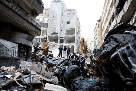 BEIRUT (Reuters) – Stepping through the charred ruins of her neighbourhood in central Beirut, Lebanese seamstress Laila Amayrad watched bulldozers pick through a building flattened by an Israeli strike days ago, hoping her friends’ bodies would be found.