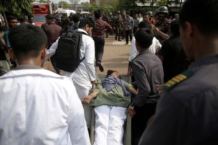DHAKA (Reuters) -Police used tear gas to disperse angry students in Bangladesh on Tuesday who demanded answers from the interim government after an air force fighter jet crashed into a Dhaka school and killed 31 people, at least 25 of them children.
