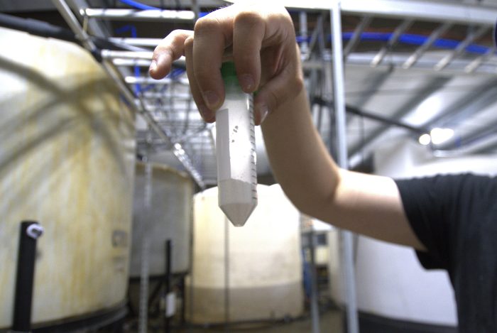From there the water is routed through massive indoor pools and a series of large tanks that, with the help of lime to lower the acidity, separate out most of the silicate, iron and aluminum. That produces a pale powdery concentrate that is about 95% rare earth oxides, plus water clean enough to return to a nearby creek.