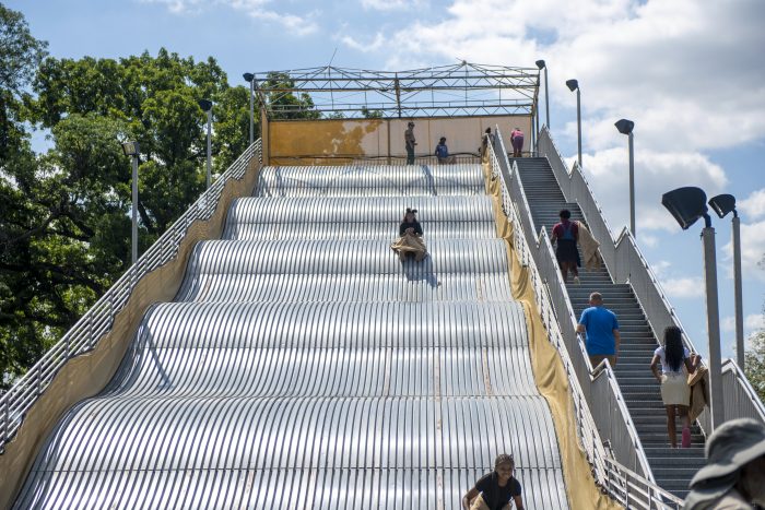 Detroit’s giant slide is back. There will probably be fewer bruises this time