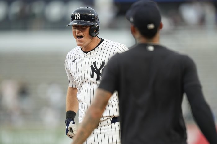 NEW YORK (AP) — New York Yankees infielder DJ LeMahieu was hit in the face by a ball while taking grounders at first base during batting practice Friday and later was scratched from the starting lineup ahead of New York’s game against the Colorado Rockies. LeMahieu was visited by a trainer before he headed into […]