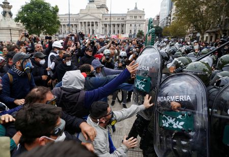 BUENOS AIRES (Reuters) -Dozens of people were injured during a protest outside Argentina’s Congress on Wednesday where activists and retired Argentines demanded higher pensions, according to Reuters witnesses.