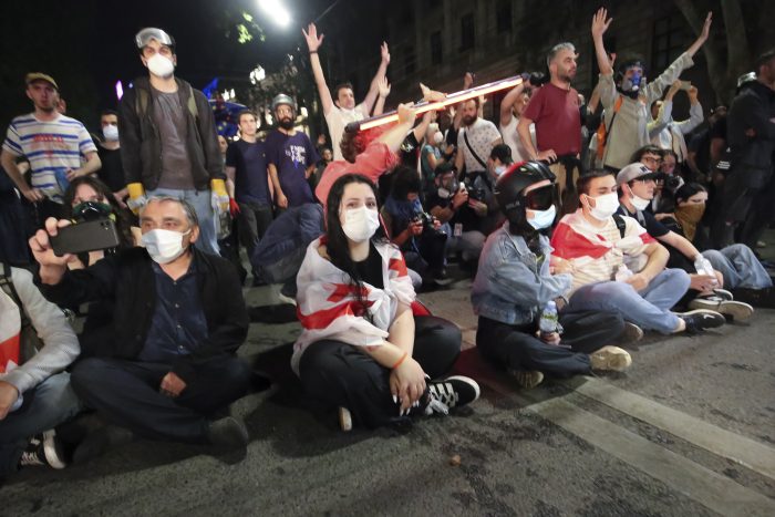 Dozens of people were arrested the night before, and mass rallies have continued daily in the capital, Tbilisi. Protesters denounce the bill as “the Russian law” because neighboring Russia uses similar legislation to stigmatize independent news media and organizations critical of the Kremlin.