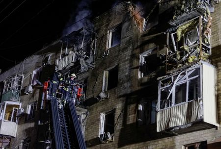 (Reuters) – A Russian drone struck a multi-storey apartment building late on Sunday in Ukraine’s second largest city, Kharkiv, triggering a fire and injuring eight people, the city’s mayor said.