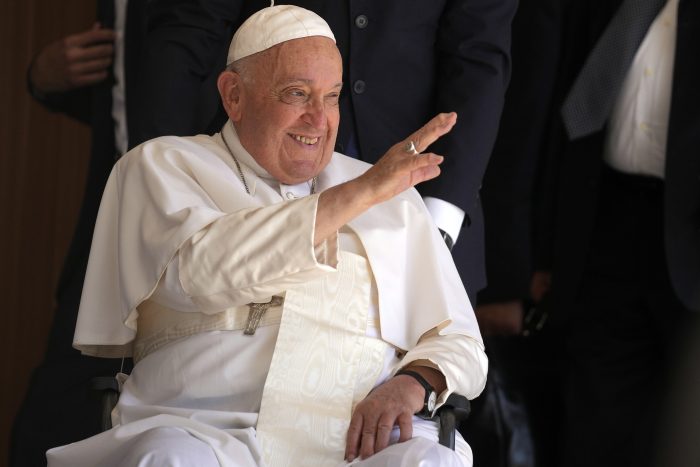 “I wish for you peace, that you keep having many children, and that your smile continues to be your children,” Francis said in his native Spanish.