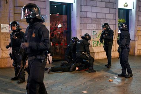 MADRID (Reuters) -Eight people were arrested and 20 police officers injured in clashes between pro-Palestinian protesters and police in Barcelona, police said on Sunday.