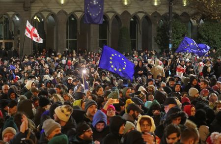 TBILISI (Reuters) – Over 100 serving Georgian diplomats have signed an open letter criticising the new government’s suspension of EU accession talks, a diplomat said on Friday, after a protest against the move led to overnight clashes on the capital’s streets.
