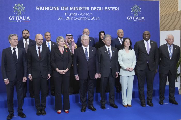 FIUGGI, Italy (AP) — Foreign ministers from leading industrialized countries threw their strong support Tuesday behind an immediate ceasefire between Israel and the Lebanese militant group Hezbollah but sidestepped the question of whether to enforce an international arrest warrant for Israel’s leader over the war in Gaza.
