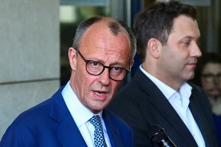 BERLIN (Reuters) – Chancellor-in-waiting Friedrich Merz called on Monday for swift action to secure Germany’s competitiveness in response to sliding stock and bond markets, following U.S. President Donald Trump’s announcement of sweeping tariffs.