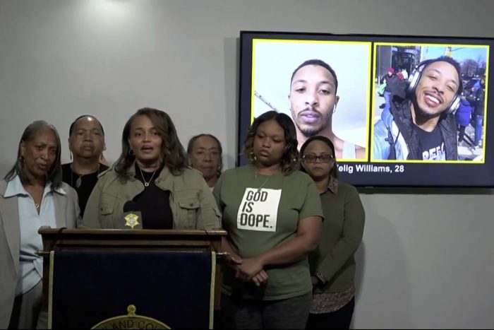 The family’s remarks ended with Williams’ mother, Kathy, who started sobbing as she spoke.