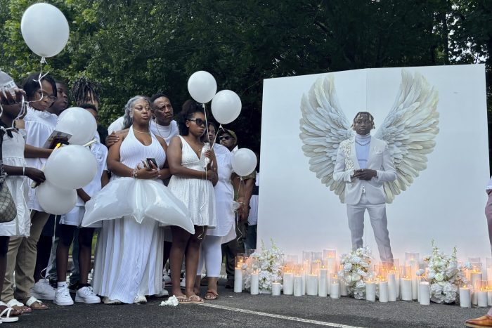 Hundreds of people attended a vigil for Peoples last week at the soccer complex where he was shot. The family released doves and white balloons and brought in a large photo of Peoples with angel wings. Candles spelled out “Jabari” at the spot where he was killed.
